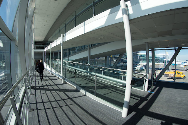 The way to the terminal. I must say this is a good use of space because the gate may be used for both international and domestic flights, the only difference is from where do the passengers come (which level)